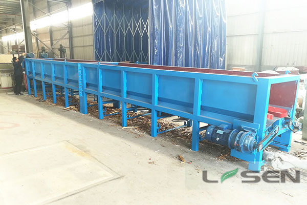 1 采用敞開料倉,可從一頭進(jìn)料,另一頭出料的流水線作業(yè),克服了現(xiàn)有滾筒式剝皮機(jī)停電進(jìn)料,出料,分段式工作方式的缺點(diǎn),工作效率高。